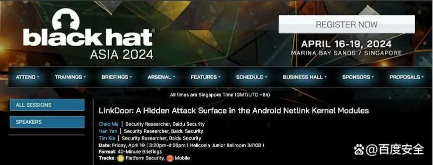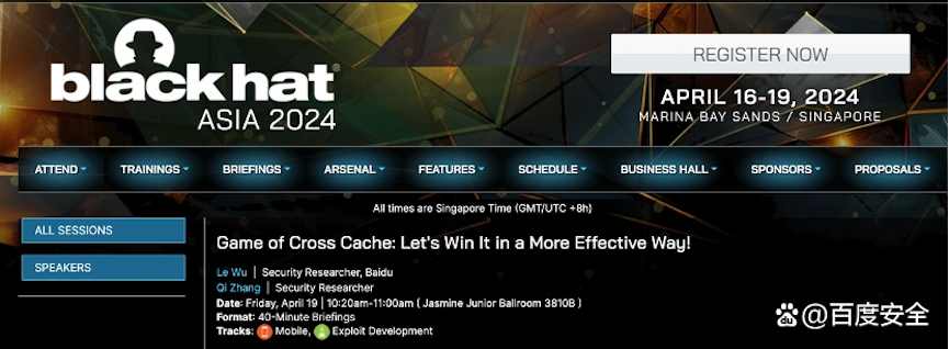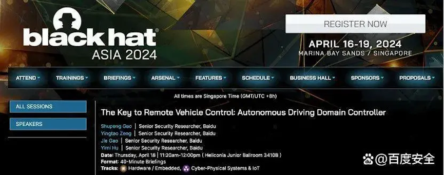 Blackhat Asia 2024于4月中旬在新加坡隆重举行。此次大会聚集了业界最杰出的信息安全专业人士和研究者,为参会人员提供了安全领域最新的研究成果和发展趋势。在本次大会上,百度安全共有三篇技术议题被大会收录,主要围绕自动驾驶控制器安全、跨缓存攻击技术、内核通信模块安全等领域进行了前沿研究,旨在提升产学研各界在智能终端、自动驾驶、AI加速芯片等领域安全性的关注,以及对这些新安全方向的持续性研究。
