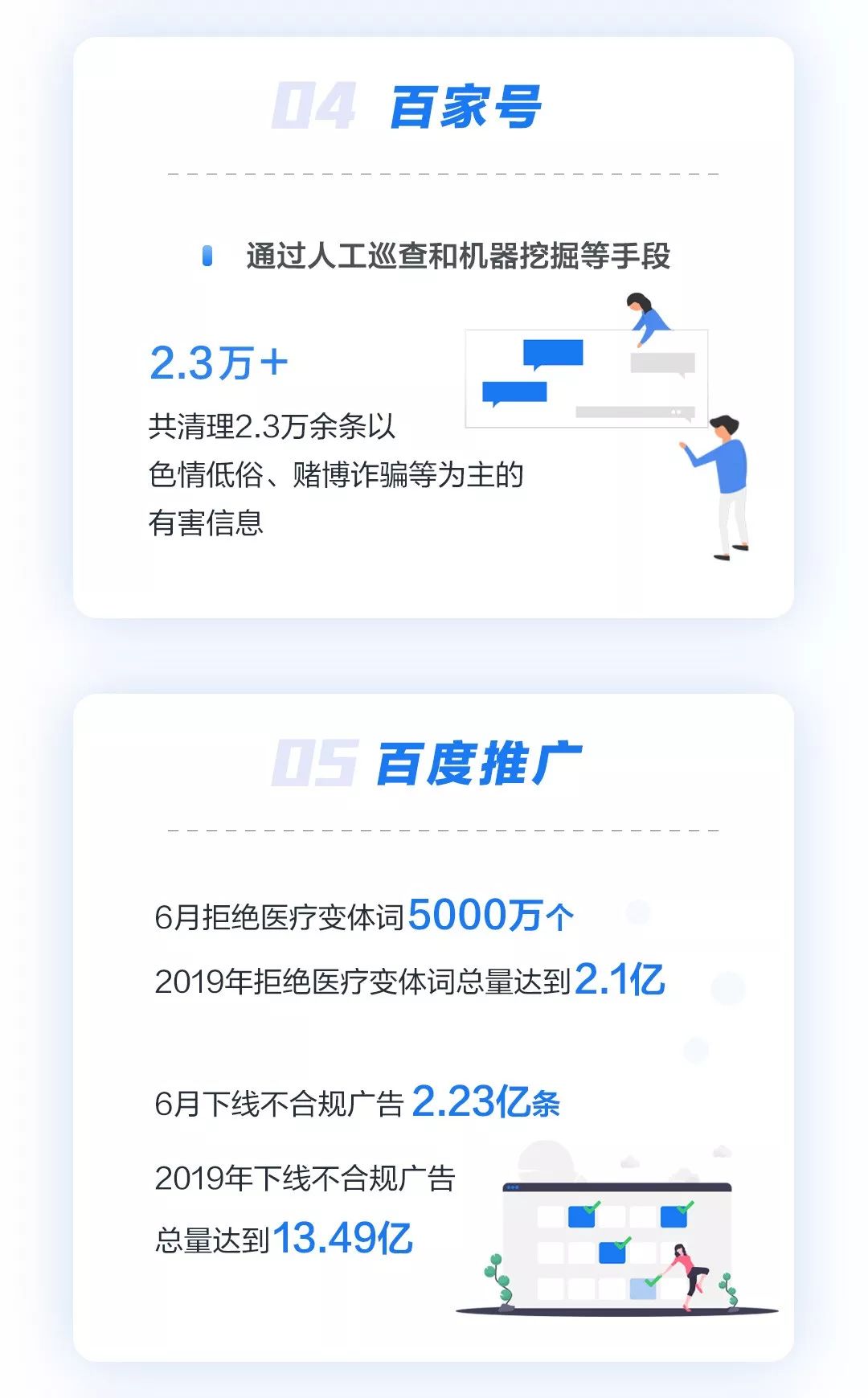在网络推广方面,百度6月下线不合规广告2.23亿条,拒绝医疗变体词5000万个,比上月增长超过40%。